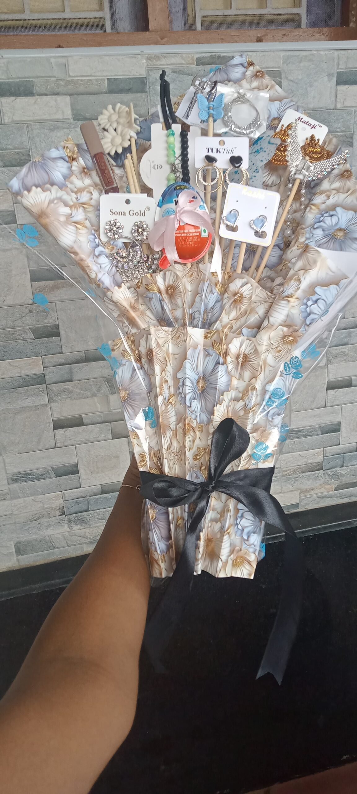 A unique bouquet crafted with love—featuring handpicked accessories like jewelry, scrunchies, and more. A stylish twist on traditional gifting!